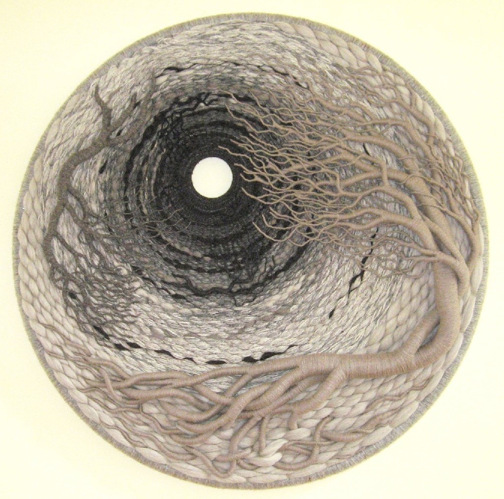 Created at Woven Tree Studios / Hang-Ups Studios. The original fiber sculptures are hand woven from natural, undyed wool. By utilizing natural fibers as a sculpting medium these pieces offer our interpretation of the wonders of the universe with emphasis on the seasonal transformation of trees, the living sculptures.